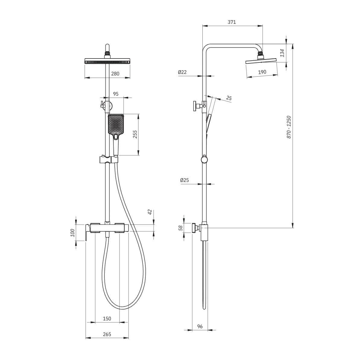 Praktiline vihmadušš võimaldab mugavalt liikuda duši all, kuna käsidušši pole vaja hoida. Komplekti modernne viimistlus sobib suurepäraselt nii minimalistlikku või industriaalset vannitoastiili.