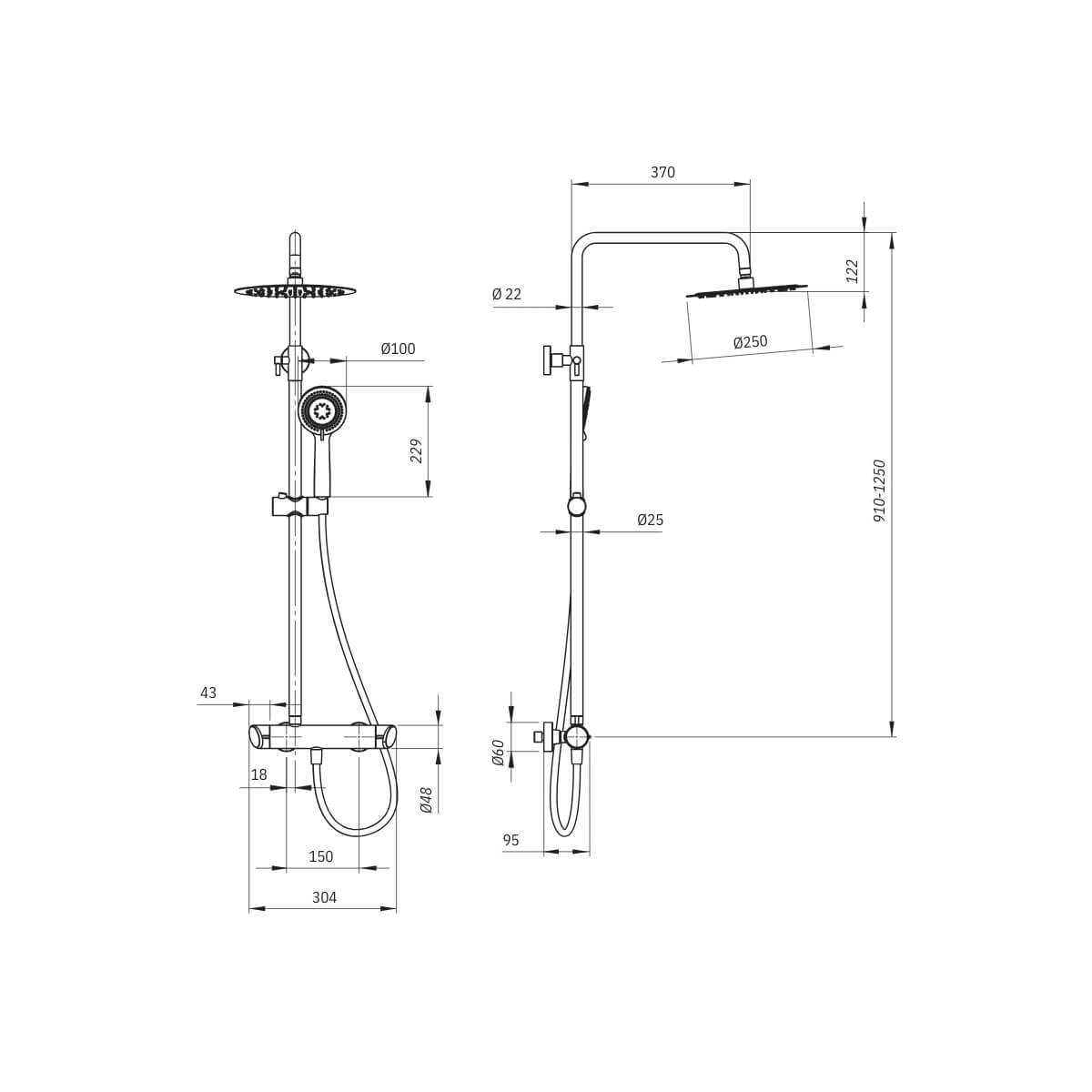 - üliõhuke terasest dušipea koos reguleeritava kaldega;