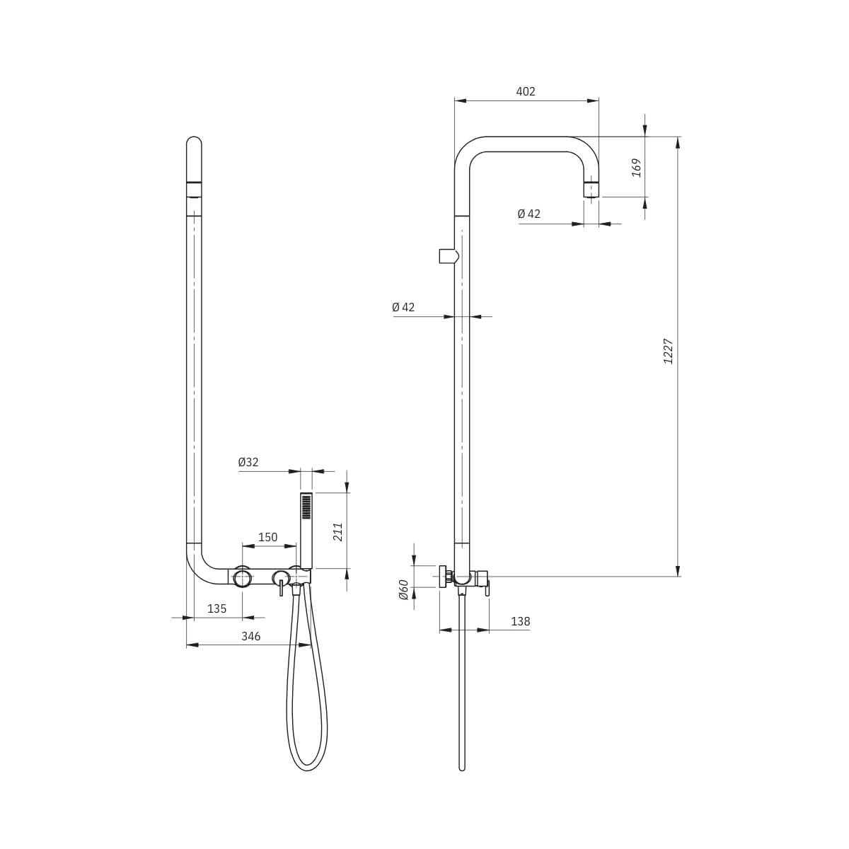 | Dušivooliku pikkus | 1500 mm |
