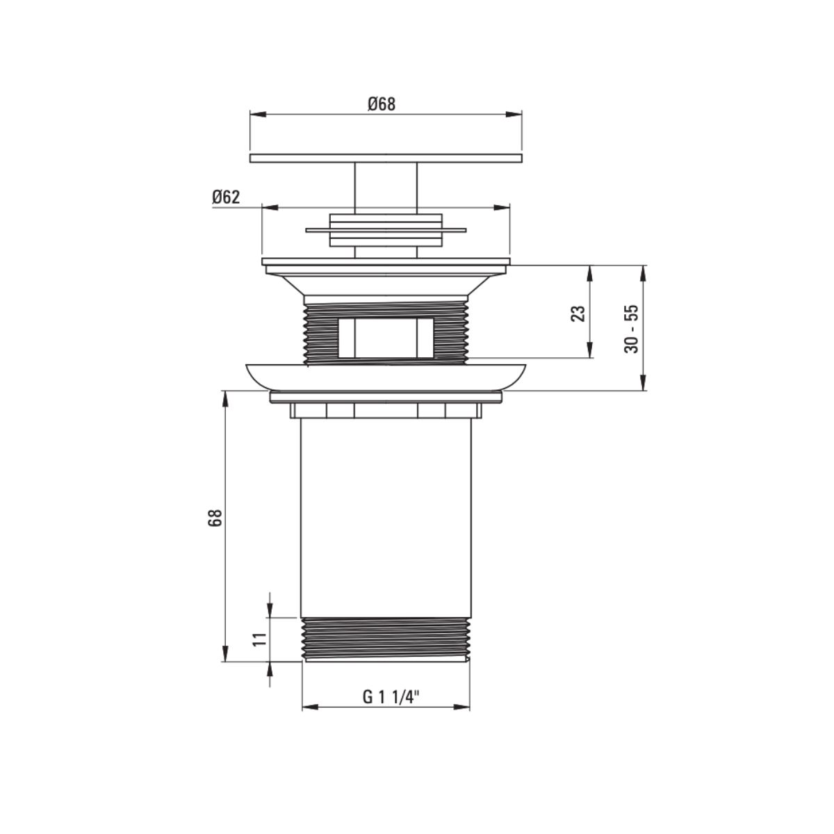 Harjatud kuld valamu äravoolupesa ühildub nii ülevooluga kui ka ilma ülevooluta valamutega. Korgi avamine ja sulgemine toimib click süsteemina ehk lihtsa vajutusega.