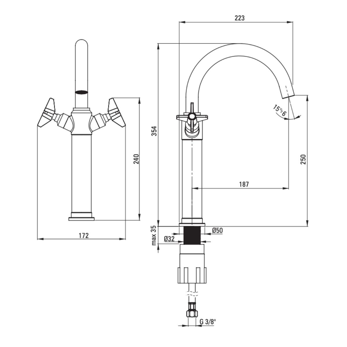 Harjatud vask valamusegisti Deante Temisto 35.4 cm, messing