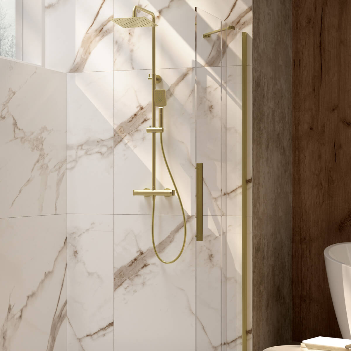 Lükanduksega dušisein Deante Prizma 100×195 cm, harjatud kuld