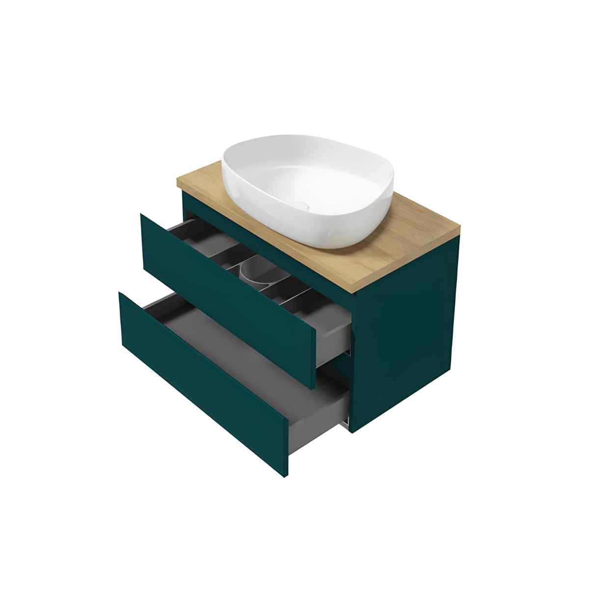 COMO D80 on seinale kinnitatav kahe sahtliga valamukapp tumerohelise mati viimistlusega. Mõõdud: 79,9 × 50 × 45,1 cm (L × K × S). Sahtlid on DefraSlim süsteemiga (õhukesed metallküljed, grafiitne täismetallkorpus) ja liiguvad täisväljatõmbel; DefraSoftClose hoiab sulgumise pehme ja vaikse. Ülasahtlis on DefraIn korraldaja. 45° freesitud servad toimivad käepidemetena, reguleeritavad riputid teevad paigalduse lihtsaks.