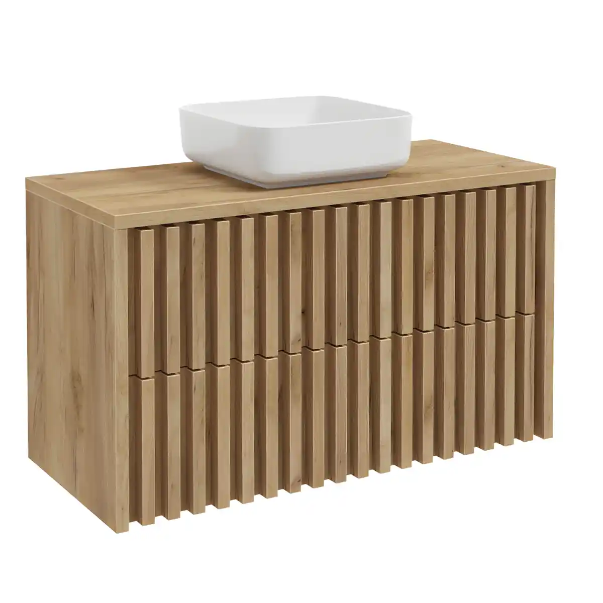 Toob vannituppa trendika lamell-esipaneeli esteetika, mis loob käepidemevaba ja puhta silueti. Kahe sügava sahtli lahendus annab ruumi pere igapäevatarvetele, täisväljatõmme avab sisu korraga ning Soft Close hoiab sulgumise vaikse ja mööblisõbraliku. 100 cm laius sobib nii üksiku laiema kausi kui ka tasapinnalahenduse eelistajale.