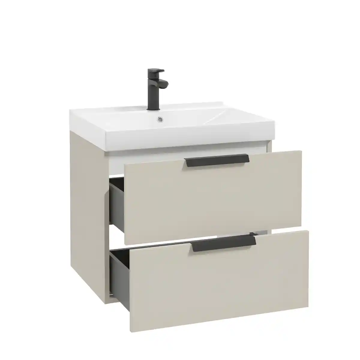 kahe sahtliga riputatav valamukapp, mille 45 cm sügavus annab rohkem hoiuruumi ja võimaldab kasutada kappi moodulsüsteemis ühise tööpinna all. Soft Close tagab sujuva ja vaikse sulgumise, lakitud kašmiir matt pind püsib kauem esinduslik ja on kerge hooldada.