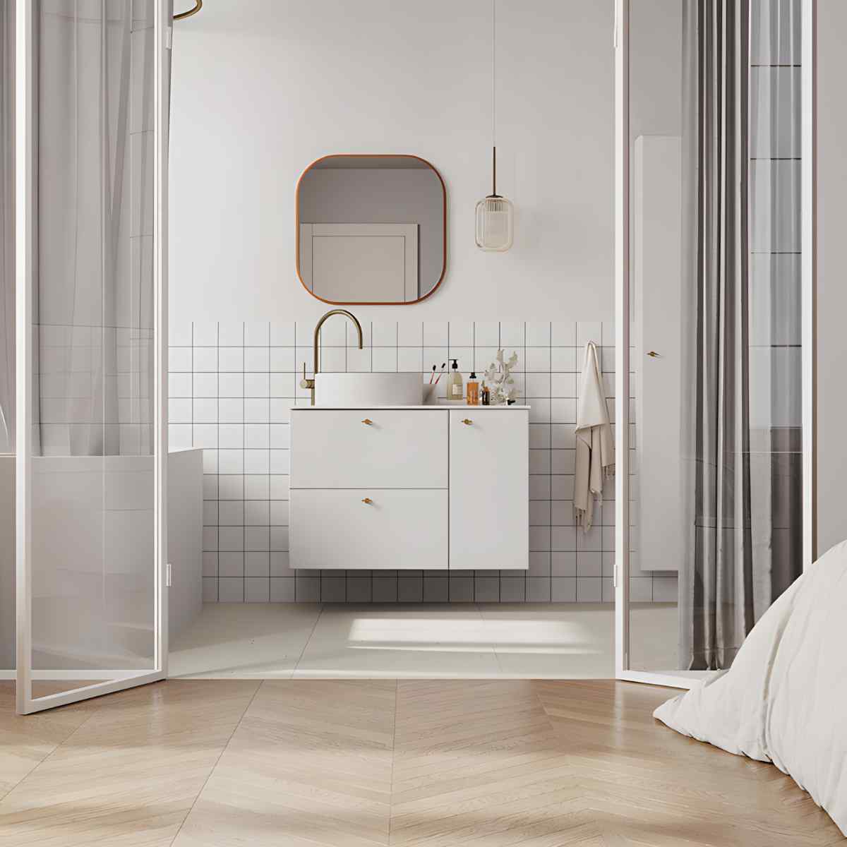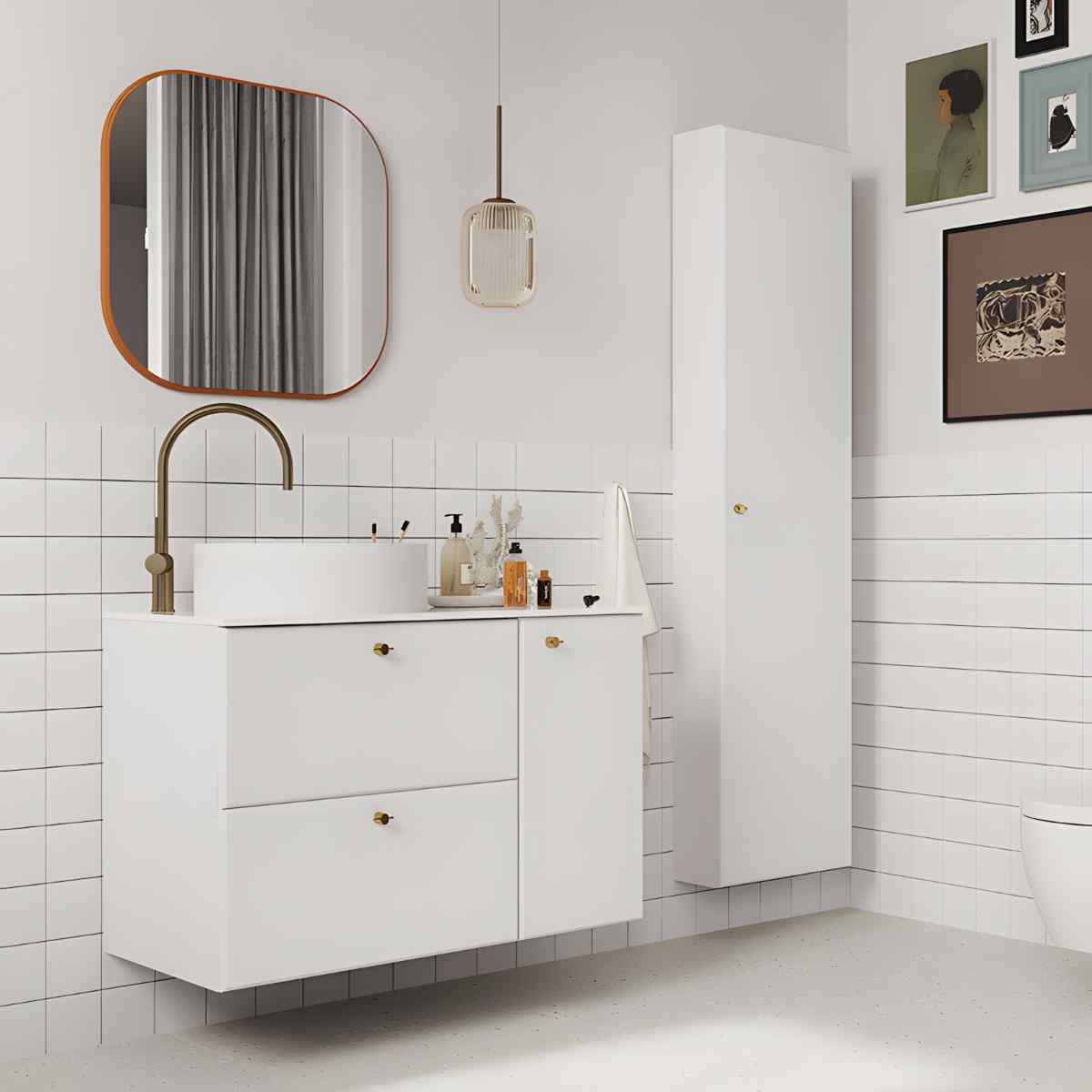 Kogu MO-RE kollektsioonis on ka seest lakitud, et parandada niiskus- ja mustuskindlust ning hooldusmugavust. Soovi korral lisa TWIG metallkäepidemed – läikiv kuld, läikiv kroom või matt must – et siduda kapp segistite ja muude metalldetailide toonidega (käepidemed ei kuulu komplekti).