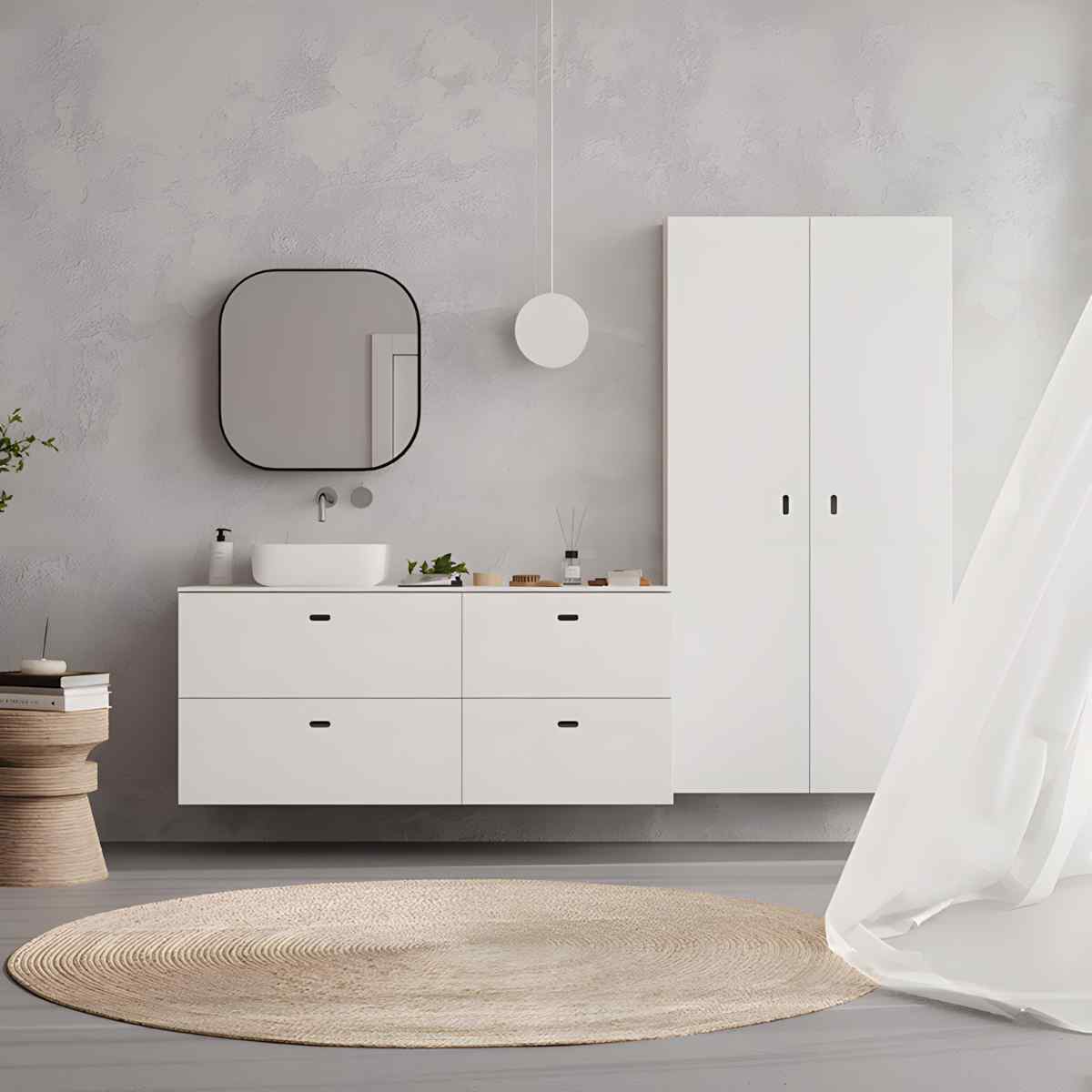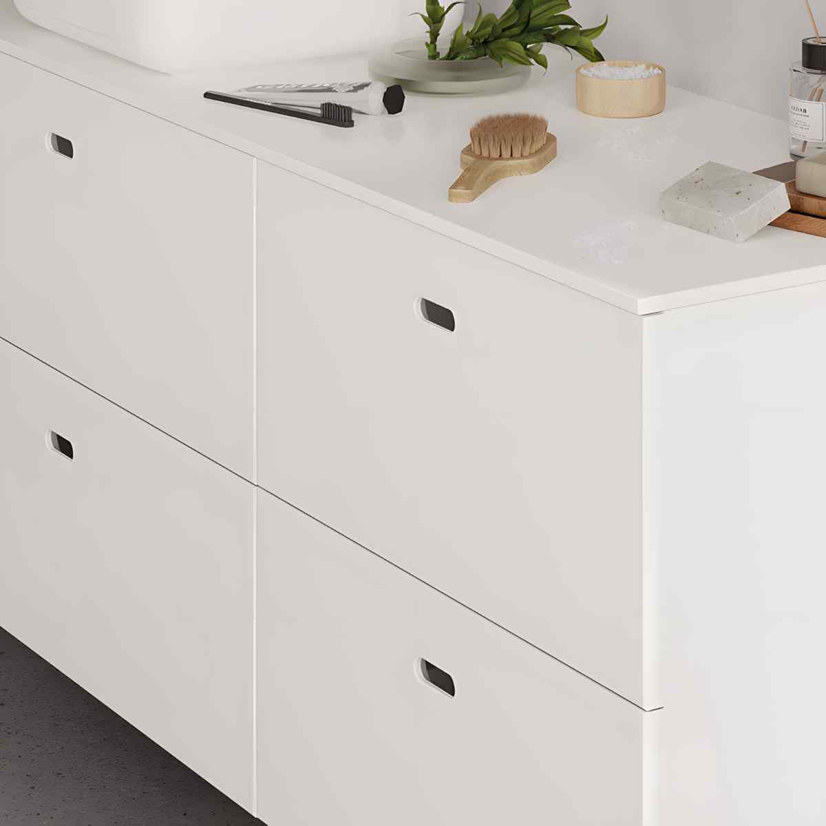 Ühendab ajatu valge mati viimistluse ja minimalistliku vormi, mis sobitub nii skandinaavialike heledate pindade kui ka kontrastsete kivitoonidega. Sahtlifrontide integreeritud freeskäepide hoiab kapijoone puhta ja mugava – haare on loomulik ning eraldi nuppe paigaldada pole vaja