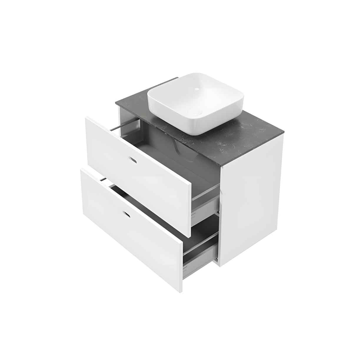 MO-RE D60 on lai seinale kinnitatav sahtlitega valamukapp modernsesse vannituppa. 2 sahtlitSoft CloseDefraMax (rohkem kasutatavat põhja-pinda). Grafiiditoonis sisemus, reguleeritavad riputid. Freesitud käepide on integreeritud sahtlitesse, mis hoiab üldpilti puhta ja graatsilisena.