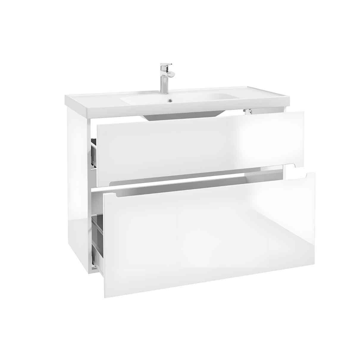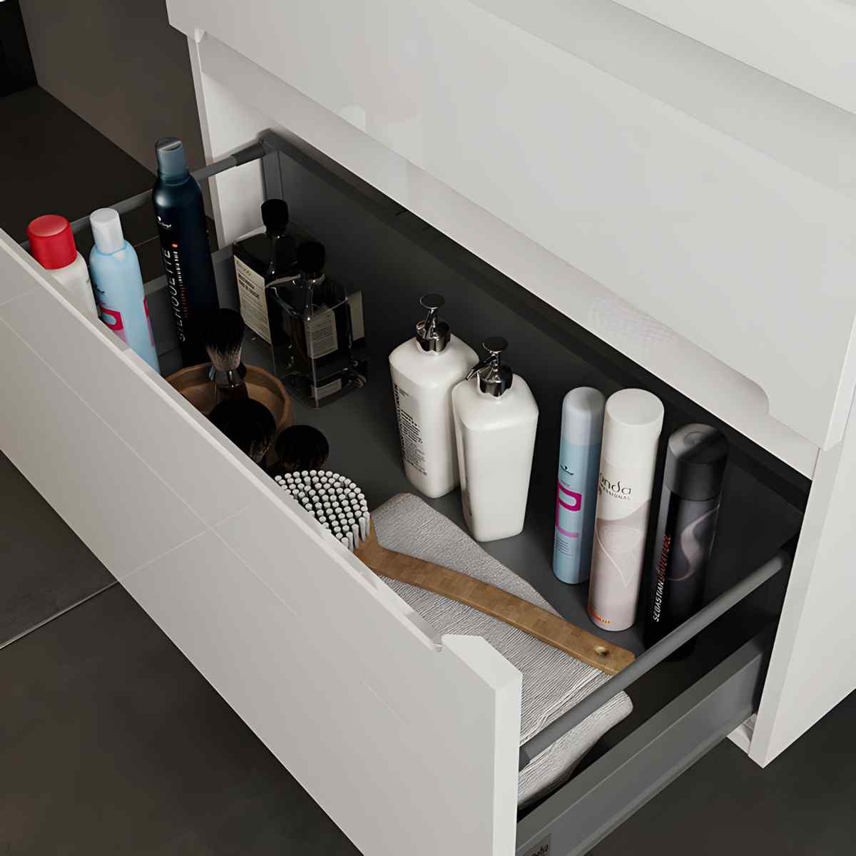 pakub laia, mugava ja selgejoonelise pesuala lahenduse. Kaks täisväljatõmbega sahtlit annavad ligipääsu kogu sisule, DefraSoftClose hoiab igapäevase kasutuse vaikse ja meeldivana. Integreeritud freeskäepide rõhutab puhtaid jooni ja valge kõrgläige muudab ruumi visuaalselt avaramaks. Sobib nii modernsesse kui skandinaavialikku vannituppa.
