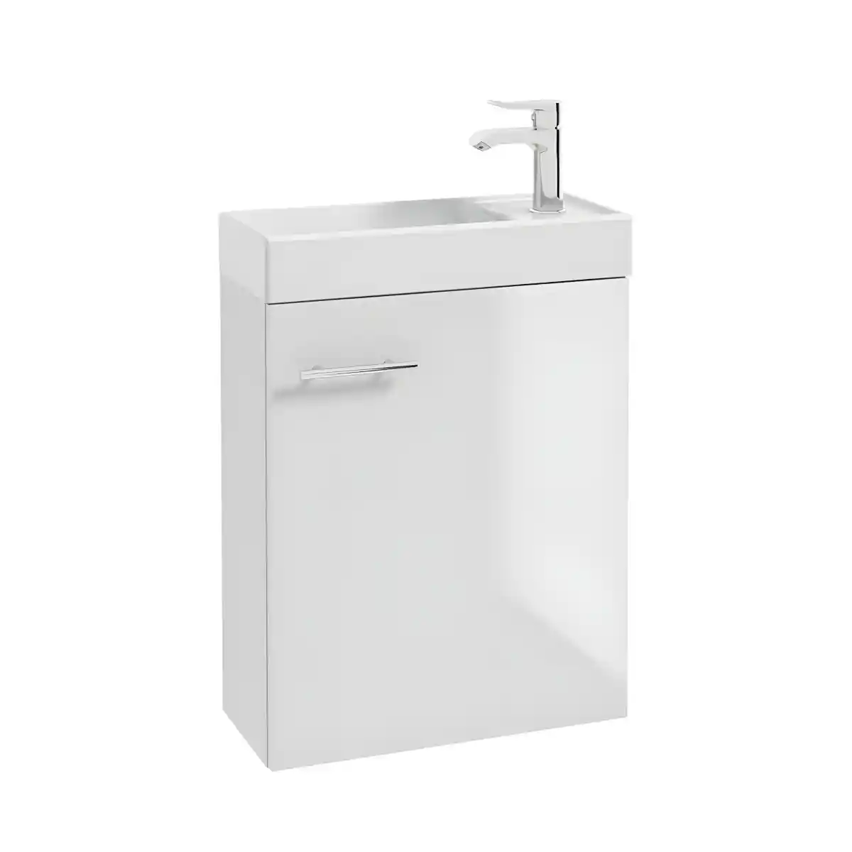 Lahendab kitsaste ruumide väljakutse: vaid 23 cm sügav, ent praktiline pesuala tänu MINI 50 mööblivalamule. Pööratav ukse suund annab paigaldusele paindlikkuse; valguskõvastuv lakikiht ja laminaatkorpus teevad hoolduse lihtsaks.